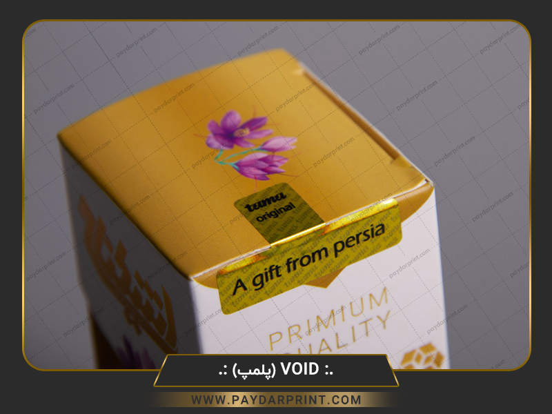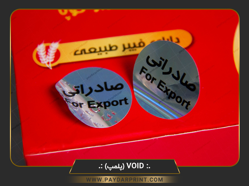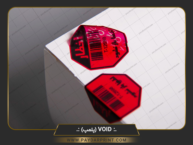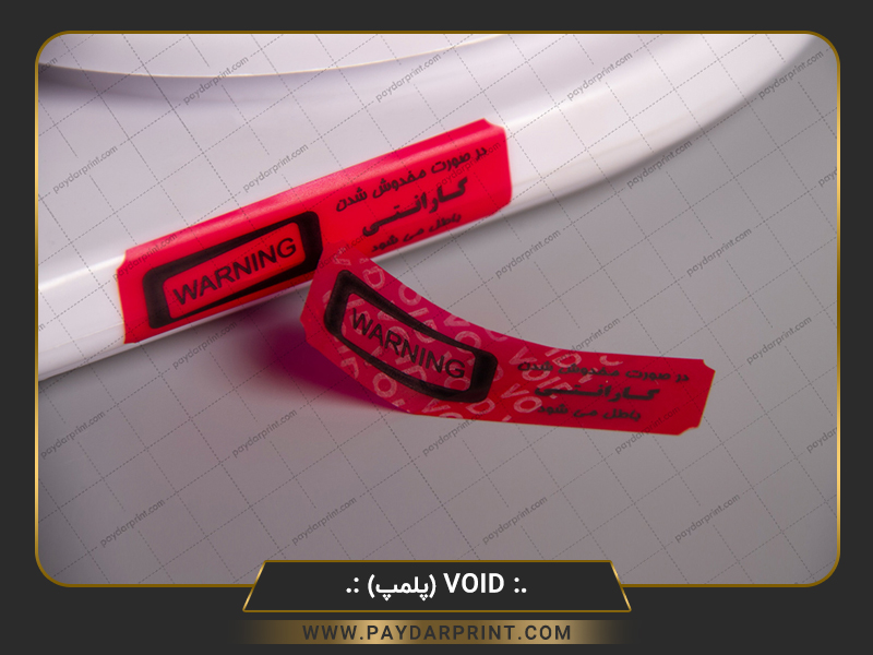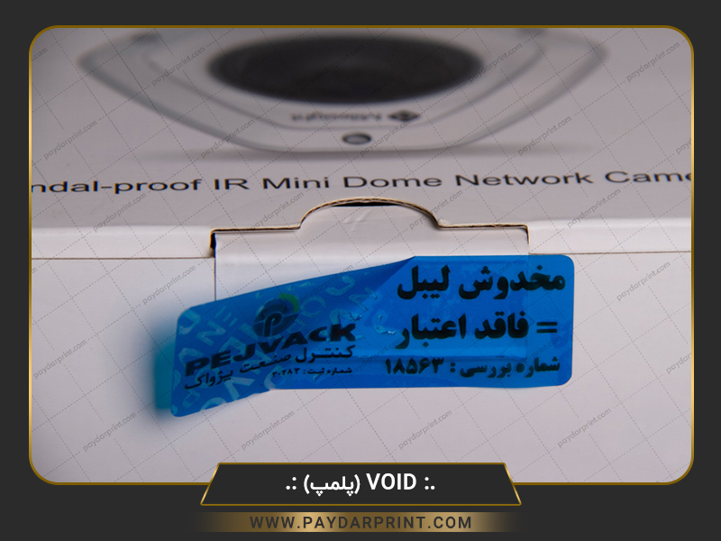 لیبل void اثرگذار : لیبل هنگامی که به محصول چسبانده میشود زمان جدا کردن ، کلمات و یا اشکال خاصی را بر روی محصول باقی می گذارد و لیبل غیر قابل استفاده می گردد.